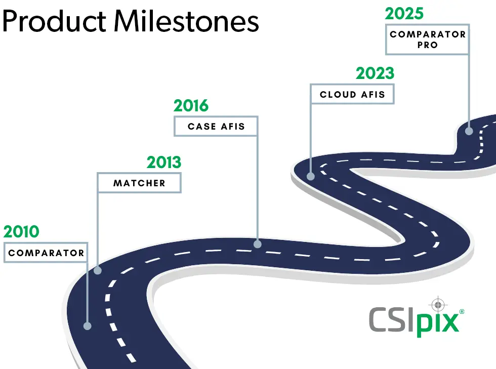 We started with CSIpix Comparator (released 2010), one of the first software applications custom-designed to help prepare, compare, and identify fingerprints and palm prints.