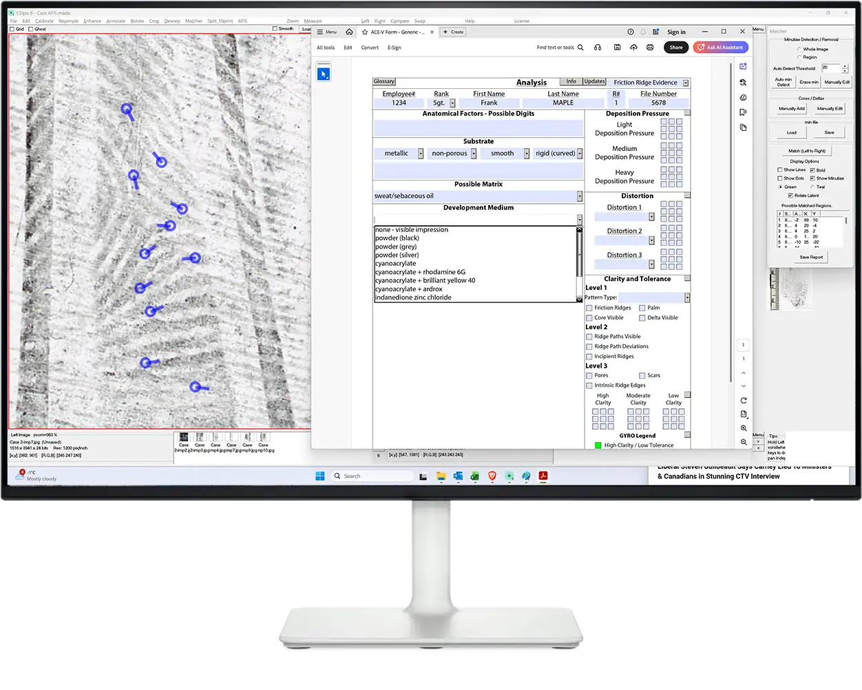 Case AFIS includes the full set of comparison, enhancement, annotation, and documentation tools available in CSIpix Comparator Pro, with the addition of automated 1:N searching and case-based AFIS functionality.